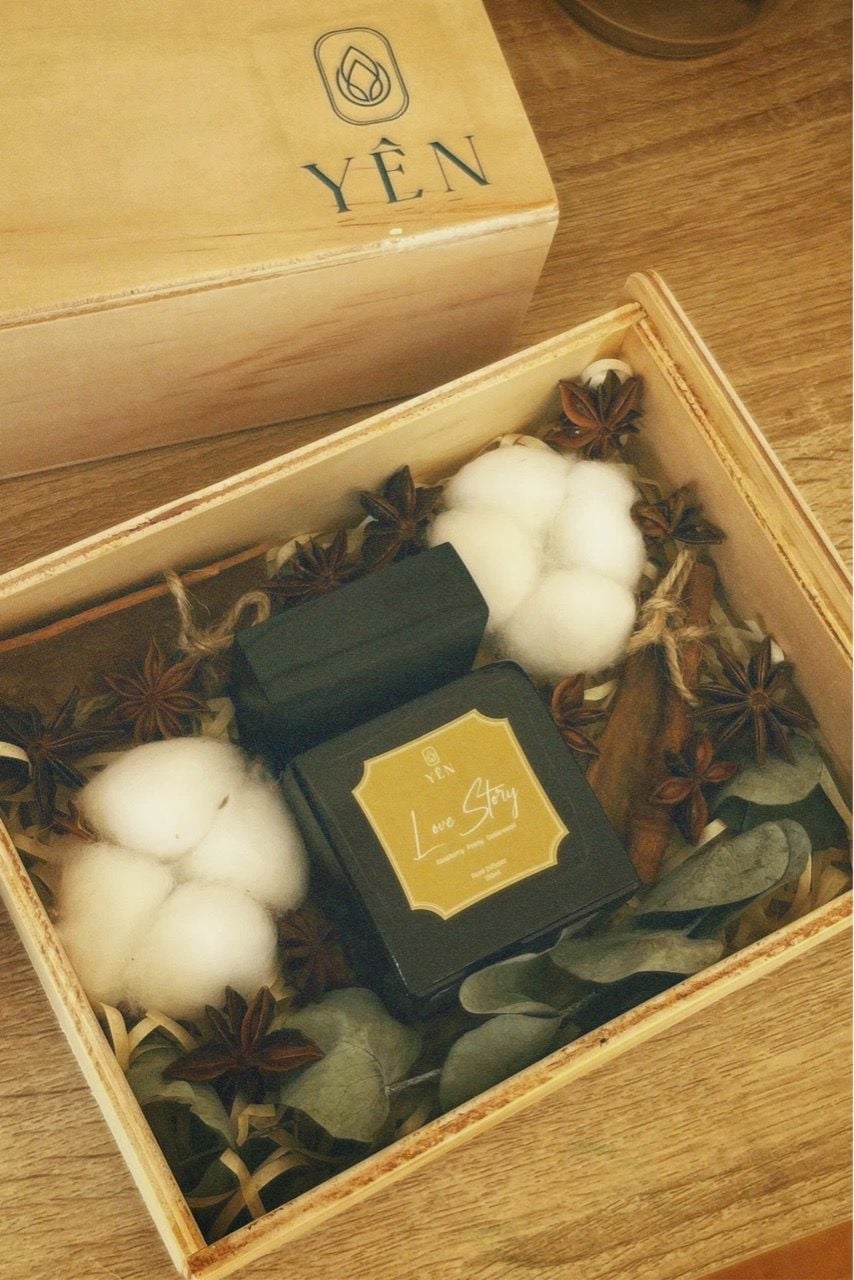 Hương hoa mẫu đơn sánh đôi cùng phúc bồn tử thể hiện được sắc thái ngọt ngào và nét quyến rũ vượt trội. Các note hương mang đến sự nhẹ nhàng hoà cùng tone gỗ trầm ấm tầng hương cuối tạo chiều sâu cho không gian.Bộ sản phẩm gồm lọ tinh dầu, 5 que khuếch tán, túi vải rút, HDSD, postcard, giấy rơm. Miễn phí gói quà với hồi và quế.